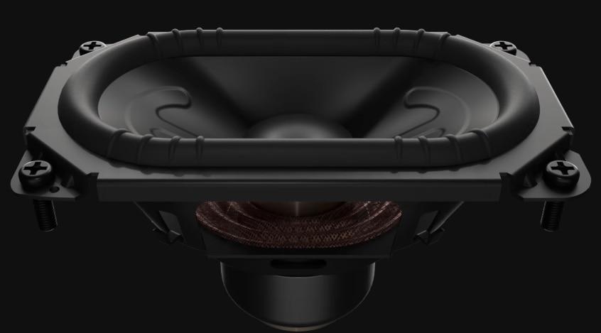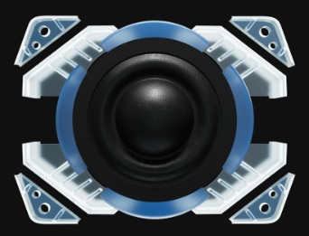 Materialul si structura woofer-ului - inclusiv crestele si contururile sale inovatoare - ajuta la minimizarea distorsiunii low-end, chiar si la volume mari