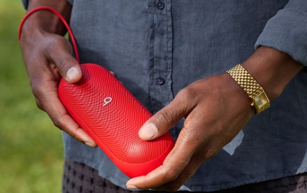 Snurul detasabil si suportul de silicon cu prindere moale fac ca boxa sa fie usor de luat cu dvs.