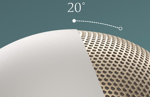Difuzorul aerodinamic are acum o inclinare de 20 de grade in sus pentru a directiona undele sonore catre cap, departe de obiectele care le-ar putea obstructiona.