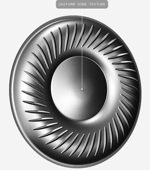 Textura uniforma a domului ajuta la asigurarea unei calitati sonore clare, naturale. Aceasta inseamna mai putina distorsiune si o iesire mai curata, chiar si la volume mari.